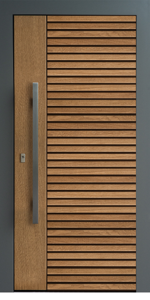 Flügel und Rahmen treffen sich auf einer Ebene, das betont die faszinierende Eleganz unserer Robur. Die kantigen Profile werden für jede Tür auf Maß gefertigt und angepasst.